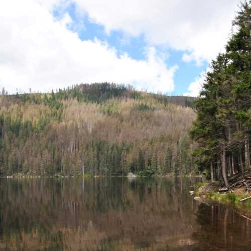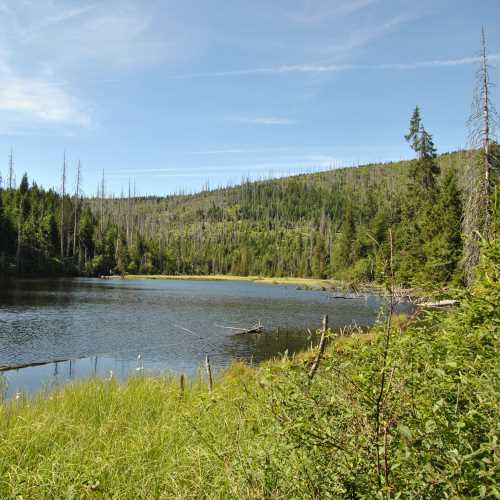 13. Prášilské jezero: Prášilské jezero (něm. Stubenbacher See) je karové ledovcové jezero na Šumavě v České republice. Leží v nadmořské výšce 1080 m. Má rozlohu 3,7 ha. Je hluboké maximálně 15 m. Nachází se v ledovcovém karu a je hrazeno 9 m vysokým valem žulových balvanů a dvěma staršími morénovými valy