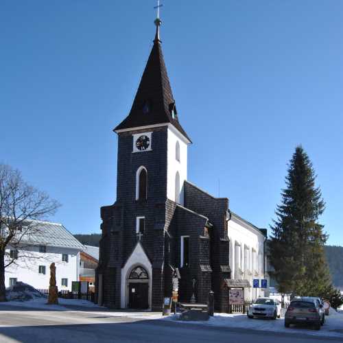 21. Kvilda, kostel sv. Štěpána: V roce 1765 vyhověla pražská arcibiskupská konsistoř žádosti kvildských věřících a poskytla svolení ke stavbě kostela včetně hřbitova. Dřevěný kostel, jehož stěny byly pokryty šindelem, byl zasvěcen památce Nalezení těla sv. Štěpána. V roce 1889 vypukl ve středu obce velký požár, zachvátil 18 domů, nově postavenou školu, shořel i dřevěný kostel. V roce 1892 byla zahájena na místě vyhořelého původního kostela výstavba kostela nového, kamenného, podle vzoru novogotického kostela v Knížecích Pláních. Nový kostel sv. Štěpána byl vysvěcen v roce 1894 a stal se součástí duchovního života věřících Kvildy i přilehlých obcí horní Šumavy.