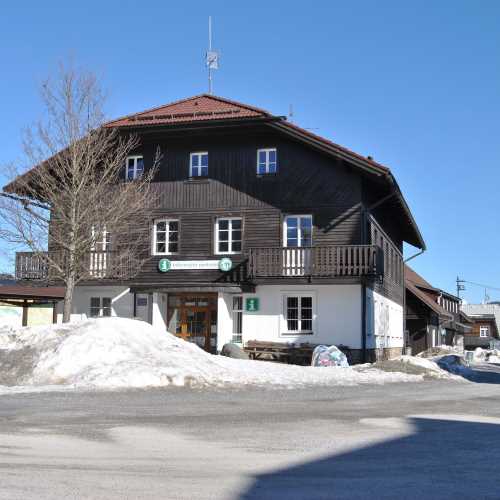 26. Kvilda, informační centrum: Kvilda je obec na území Národního parku Šumava, v okrese Prachatice, 16 km jihozápadně od Vimperka. S nadmořskou výškou 1065 m se podle polohy obecního úřadu, pošty a kostela jedná o nejvýše položenou obec v České republice. Leží 5 km od pramenů Teplé Vltavy, v místech, kde do ní zleva ústí Kvildský potok.