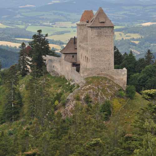 18. Hrad Kašperk: Královský hrad Kašperk, je nejvýše položený královský hrad v Čechách. Byl postaven z příkazu římského císaře a českého krále Karla IV., nachází se 3 km od Kašperských Hor. Střežil zemskou hranici s Bavorskem, ochránil významné naleziště zlata a zabezpečil důležitou obchodní trasu tzv. Zlaté stezky.