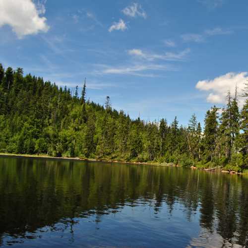 17. Čertovo jezero: Druhé největší ledovcové jezero. Čertovo jezero se nachází v nadmořské výšce 1030 metrů na jihovýchodní straně Jezerní hory. Je druhým největším ledovcovým jezerem Šumavy. Jeho rozloha je 9,7 ha, místy je hluboké až 37 m. Můžete si při pohledu na vodní hladinu představovat, že zde čert chtěl unést dívku do pekla. Podle legendy mu však přivázala na ocas kámen a on se v jezeře utopil. Voda z Čertova jezera teče do Dunaje a dál do Černého moře. K jezeru se dostanete ze Železné rudy po žluté nebo červené značce.