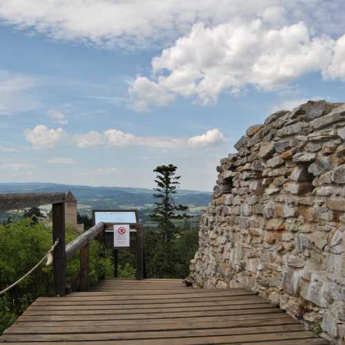 6. Pustý Hrádek: je zřícenina hradu ležící na vrchu asi 400 m východně od hradu Kašperku, Stavba měla zabránit případným útočníkům v ostřelování níže položeného Kašperku z výšky. Tato pozdně gotická stavba pochází pravděpodobně z 15. století.