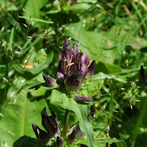 28. Hořec šumavský: (Gentiana pannonica). Patří mezi zvláště chráněné druhy v kategorii silně ohrožené. Je jediný zástupce rodu na našem území, který má tmavě fialové květy.