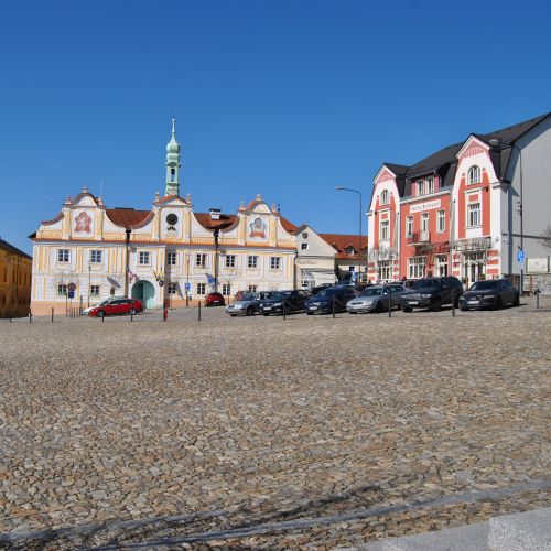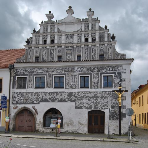 3. Kašperské Hory - radnice , byla na dnešním místě zřízena někdy ve druhé polovině 16. století. Původní objekt si v roce 1539 koupil tehdejší zástavní držitel hradu Kašperku Jiří z Lokšan. Dům velkoryse zvelebil a přivedl k němu první vodovod. Součástí domu i pozdější radnice bývala pivnice, dvůr s pivovarem a zahradou. V průběhu 17. - 18. století byla budova radnice přestavěna do dnešní renesančně - barokní podoby.